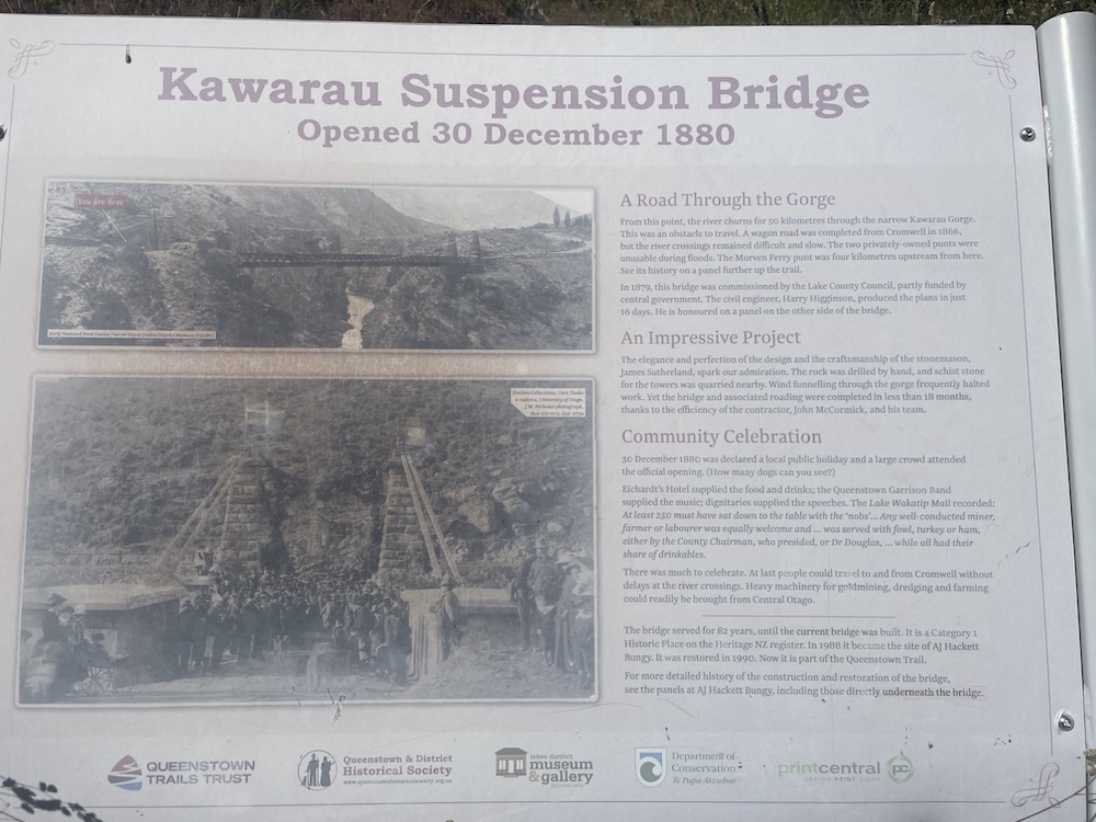 Now comes the fun part of the journey, arriving at the famous Kawarau Suspension Bridge and observe the crazy people launching from the old bridge. Only pedestrian and bicycle traffic is allowed on this bridge these days, the road has since been diverted over a modern bridge a few hundred meters away.
