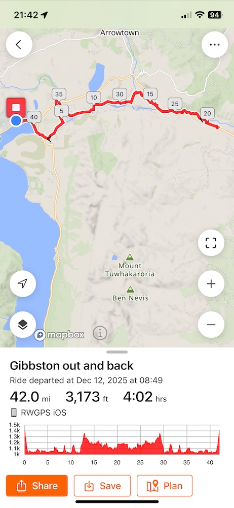 This famous bungie bridge, which is heralded as the first commercial bungie jump location in the world, is on the way to Gibbston, a wine producing area, especially known for its Pinot’s. However, to reach these two objectives I would have to cross the Edgar bridge – the sight of which caused me to turn-around that last time I tried this route. Today would be different. The route is relatively straight forward, its an out and back gravel ride.