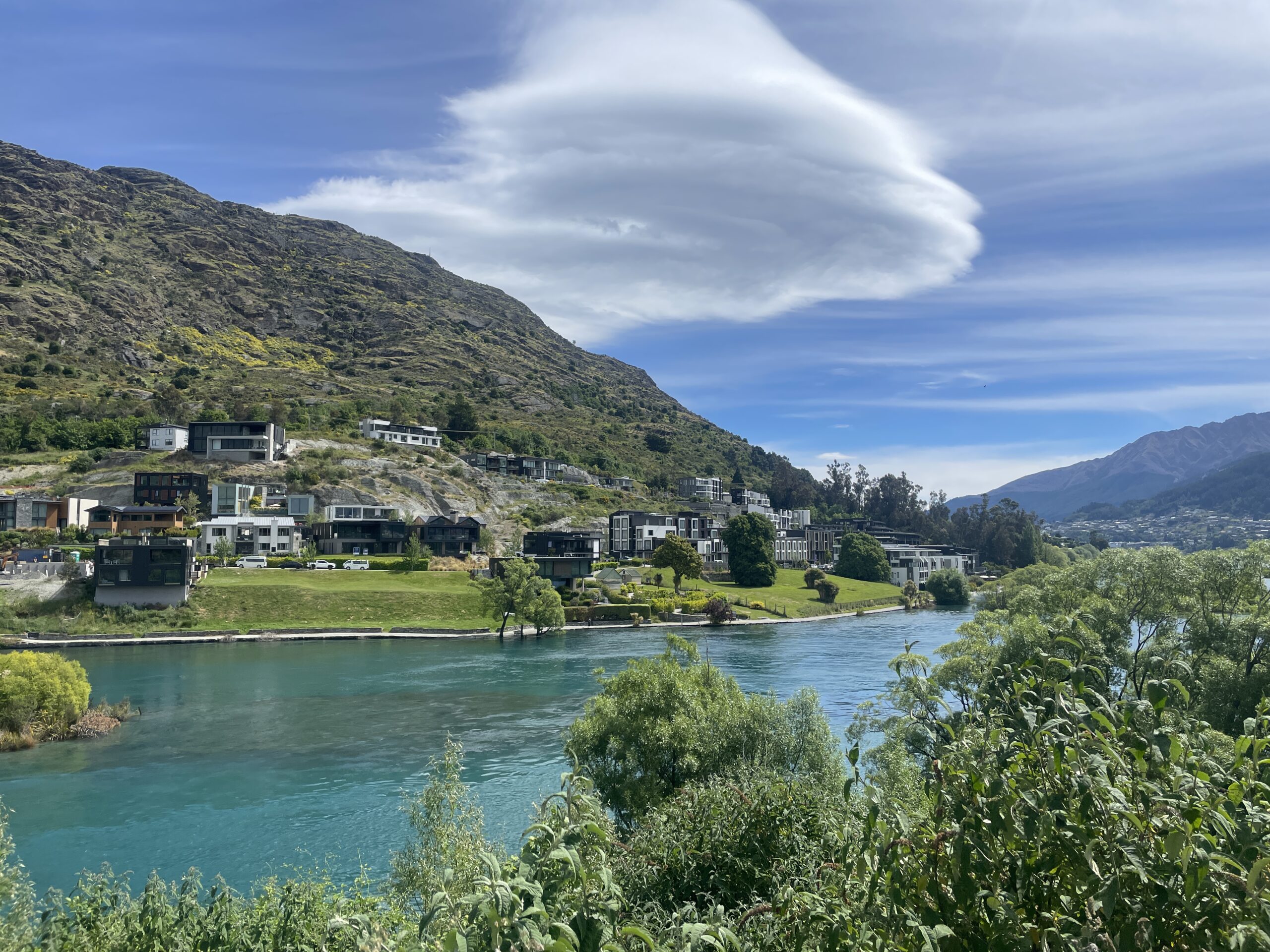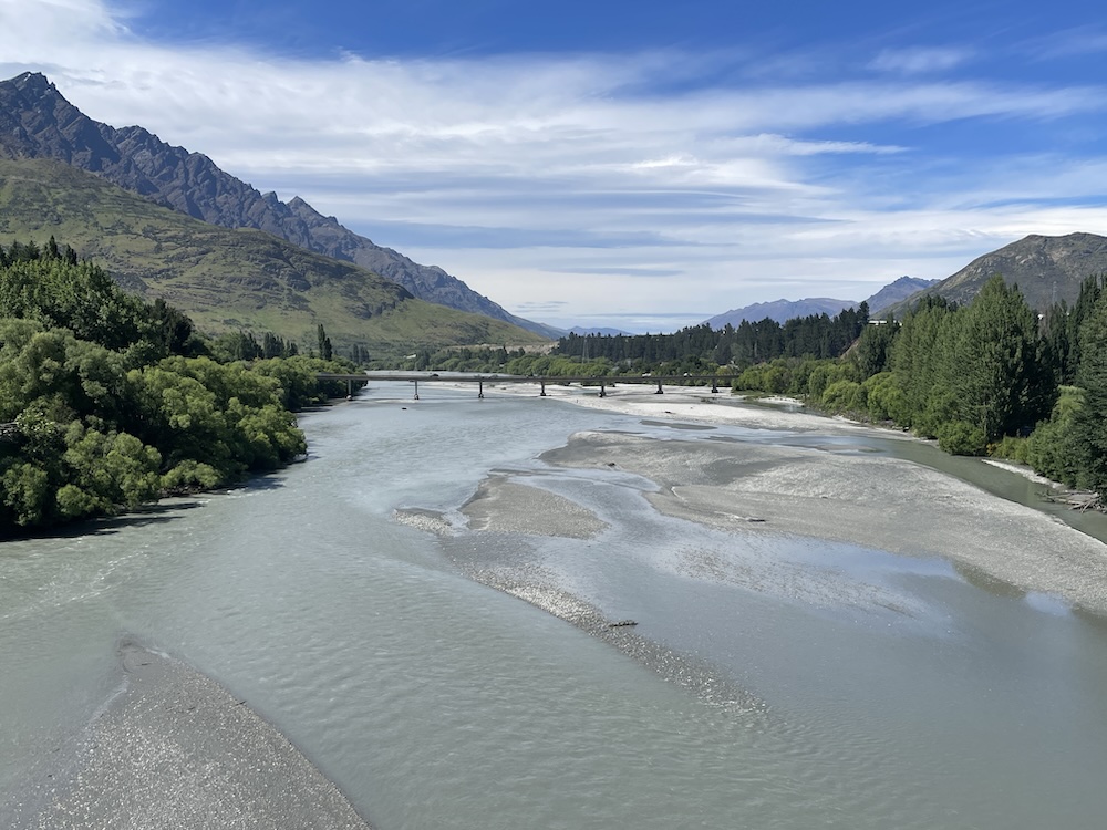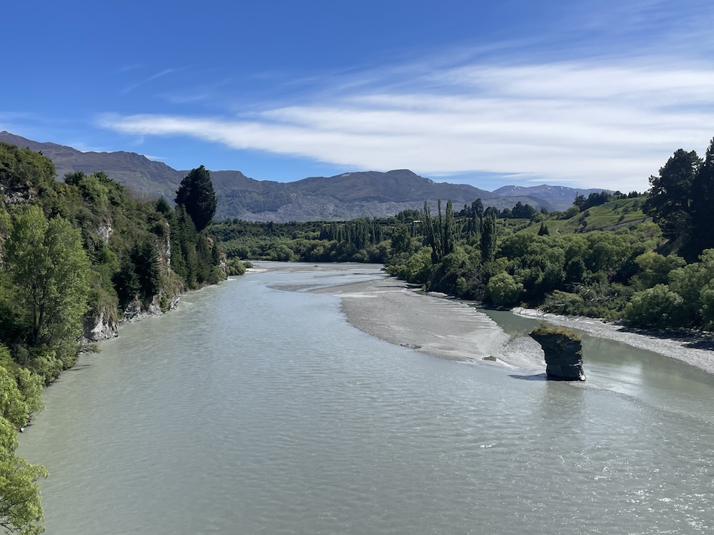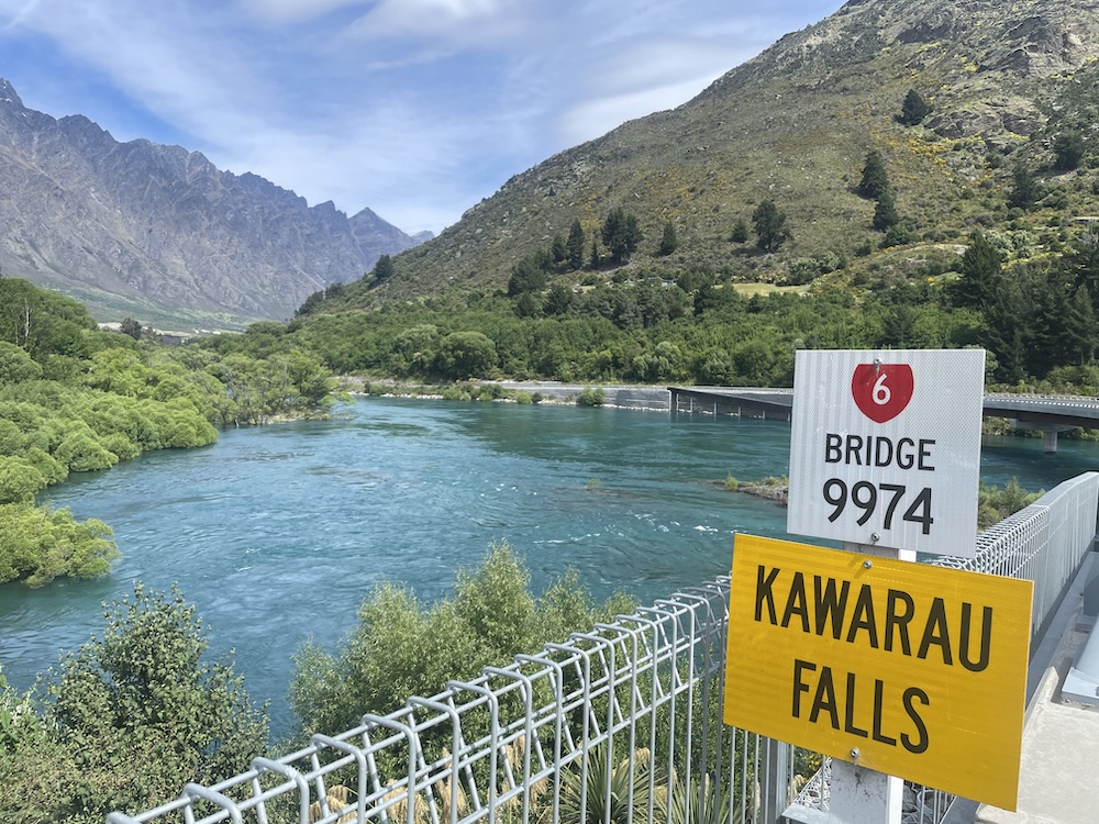 Eventually you reach Lake Wakatipu, where Queenstown is located, crossing one of the inlets where you can walk to Kawarau Falls.