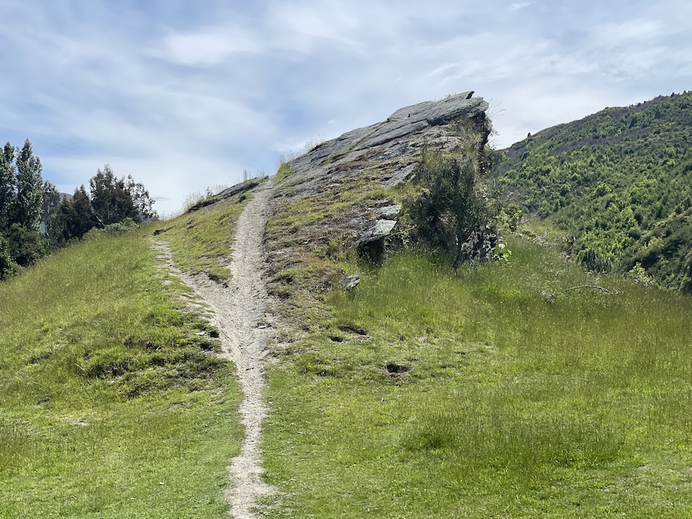 On the way to Arrowtown on section 6 it wasn’t long before I arrived at another scary bridge… This time it was standing between me and lunch so I closed my eyes and… No! I kept them wide open and walked across while still straddling the bike. It wasn’t so bad after all. Immediately after the bridge I caught up with a family taking pictures of a rock. We agreed that it looked like Pride Rock in the Lion King movie… what do you think?